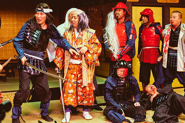 伝説の猿の師匠に刀を教わった剣士“宮本寂しい”(とにかく明るい安村)と“わり井直虎”(イワクラ・蛙亭)が主役。直虎の仕事は町の団子屋に団子を卸す業者をやっている。しか決まっていない…丸投げされたストーリーを壁芸人たちが全力で作りだし、有吉監督が先に撮ったエンディングと繋がって最高の物語が出来るのか!?