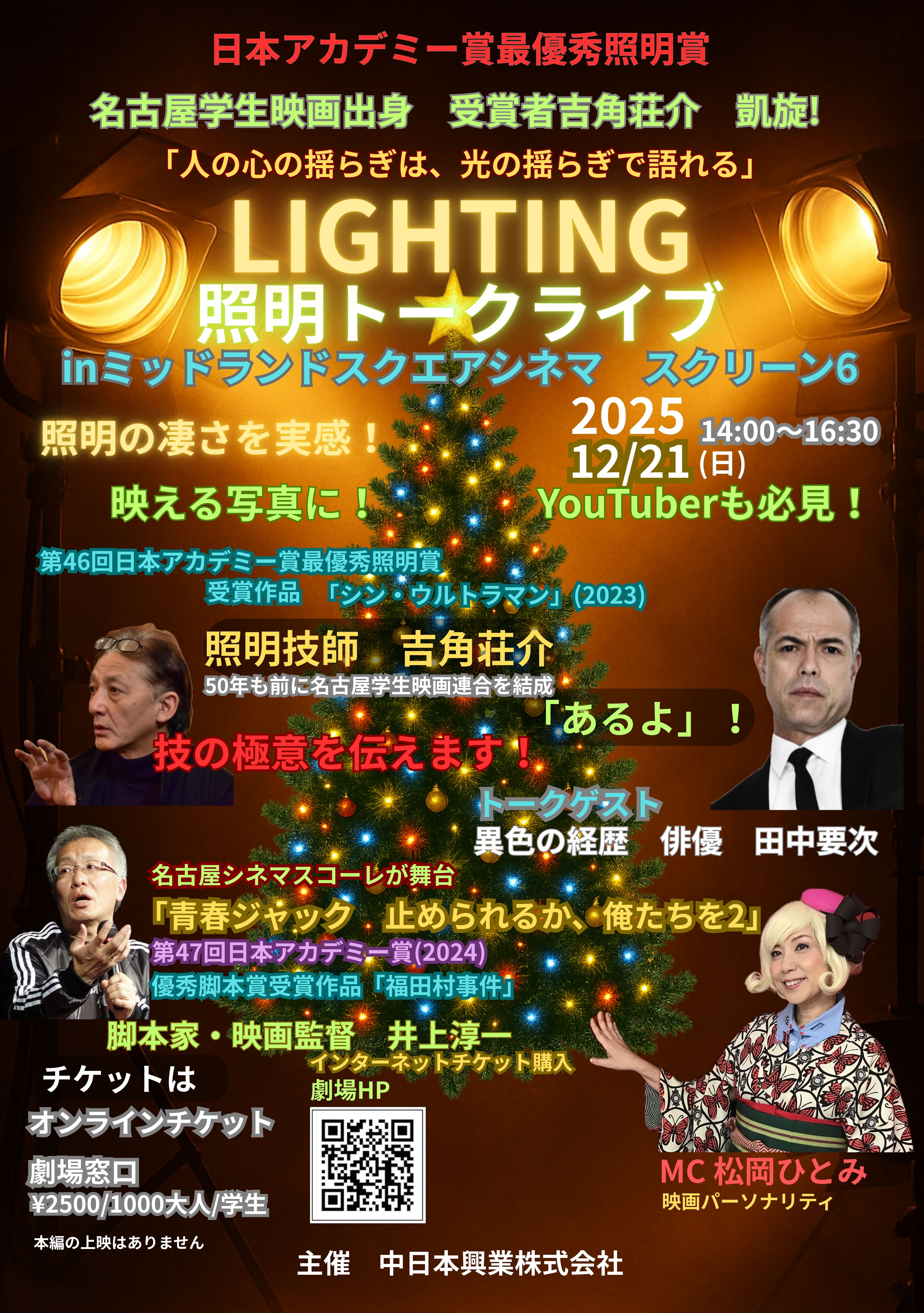 第46回日本アカデミー賞最優秀照明賞受賞、【照明技師】吉角荘介さんを迎え